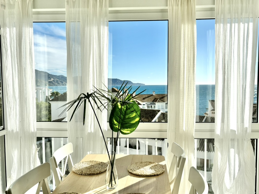 Gracias a la ubicación céntrica de este alojamiento, tú y los tuyos lo tendréis todo a mano. Orientación sur, con vistas panorámicas a Nerja, Sierra Almijara, Cerro Gordo… y el mar!