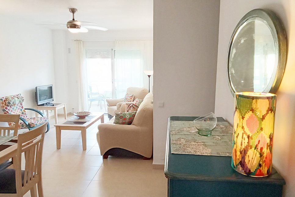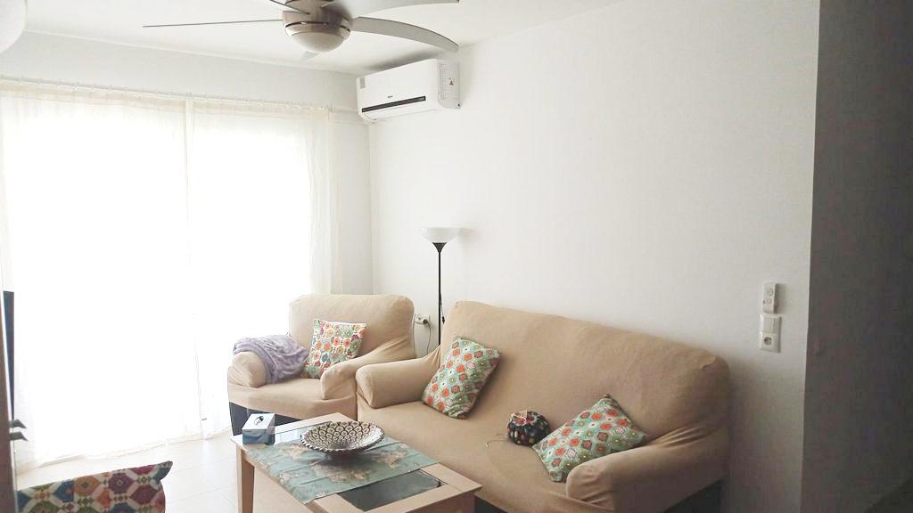 El apartamento se encuentra en una segunda planta. El edificio tiene ascensor y acceso con rampa. Tiene unos 70m2 distribuidos en una planta. Un gran salón comedor abierto a la cocina, dos dormitorios, dos baños y una gran terraza acristalada a la que se accede tanto por el salón como por uno de los dormitorios.