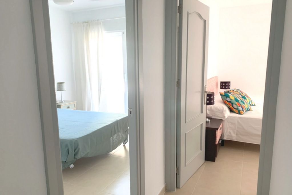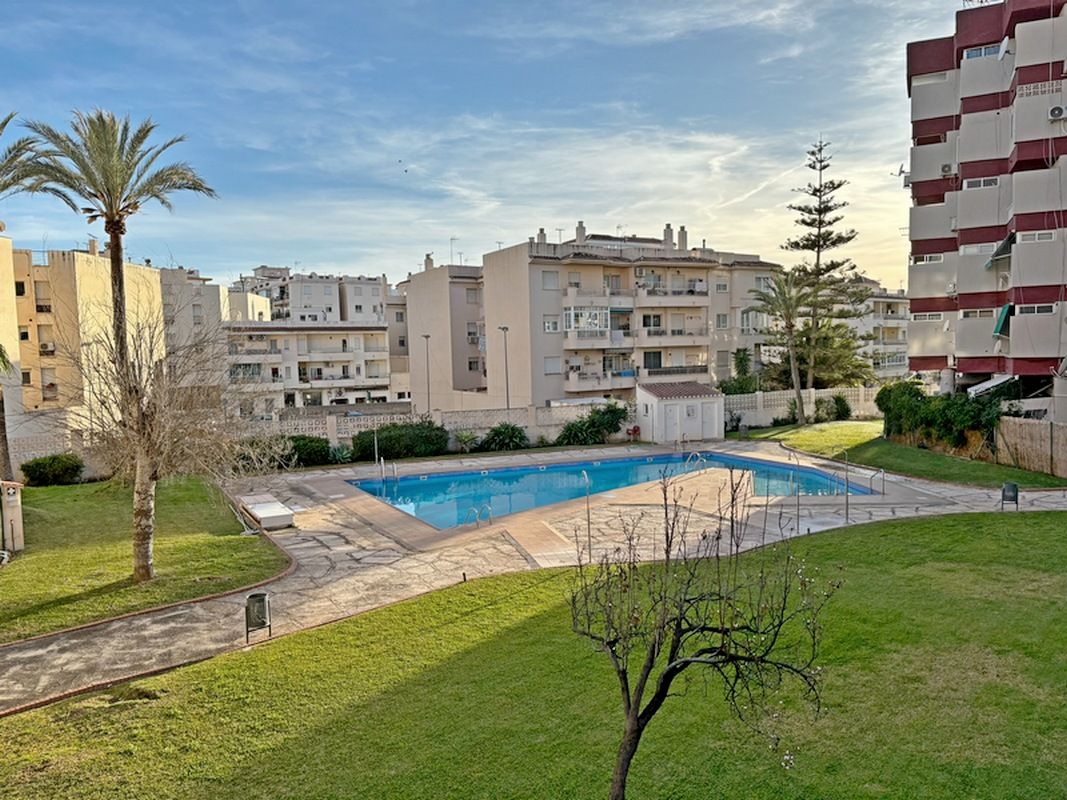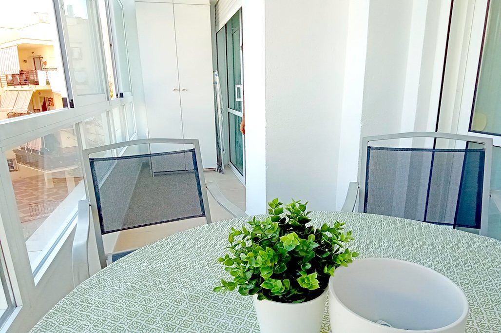 Situado en pleno centro de Nerja, justo donde empieza la zona peatonal. Rodeado de bares, cafeterías y pequeño comercio, una zona muy local y excelente para ir a pie a cualquier sitio. El bloque ofrece jardines y piscinas comunitarias a partir de junio y está a unos 200 m. de la playa Torrecilla. El apartamento es bastante luminoso, orientado al sudeste, tiene una terraza accesible desde el salón y uno de los dormitorios y es acogedor y espacioso.
